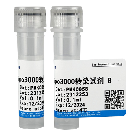 pmlipo2000轉染試劑是一種新型的陽離子脂質體轉染試劑,適合于將核酸(DNA和RNA)轉染至真核細胞,具有低細胞毒性、對多種類型的細胞都具有高轉染效率、轉染時血清的存在不影響轉染效率的優點。