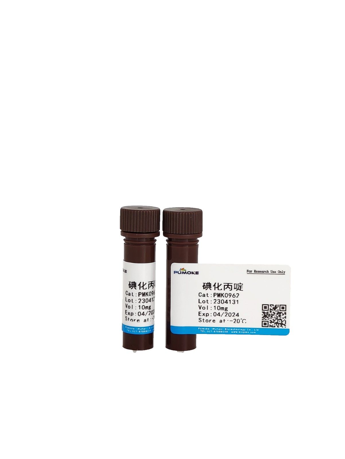 碘化丙啶(Propidium Iodide)是一種可對 DNA 染色的細胞核染色試劑,深紅色結晶性粉末,是一種溴化乙啶的類似物,在嵌入雙鏈 DNA 后釋放紅色熒光