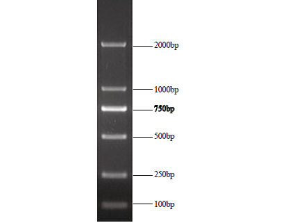 100bp,250bp,500bp,750bp(亮帶),1000bp,2000bp。