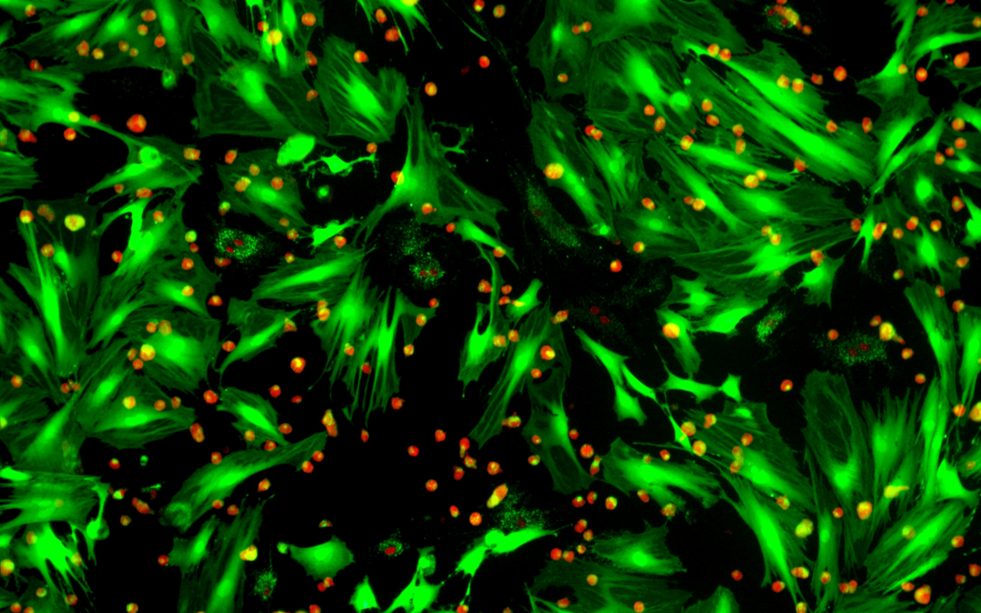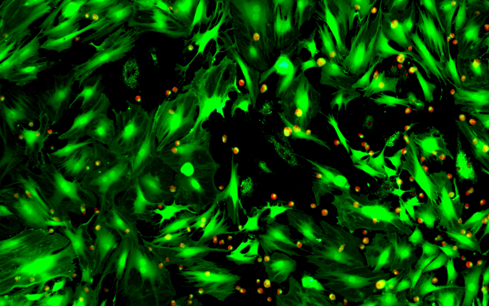 細胞介導的細胞毒性是一種重要現象,其特征是免疫系統使受損的細胞在體內被細胞溶解。區分活細胞和死細胞對于研究生長控制和細胞死亡非常重要。活/死細胞雙重染色試劑盒提供了一種方便的測定方法,以評估細胞的活力,它基于使用兩種探針同時測定活細胞和死細胞的方法,這些探針測量公認的細胞健康參數:質膜完整性和細胞內酯酶活性。該試劑盒利用可滲透細胞的綠色熒光染料 Calcein AM(Ex/Em=488/530nm)染色活細胞,并使用不可滲透細胞的紅色熒光染料 PI(Ex/Em=535/617)用來染死細胞。
