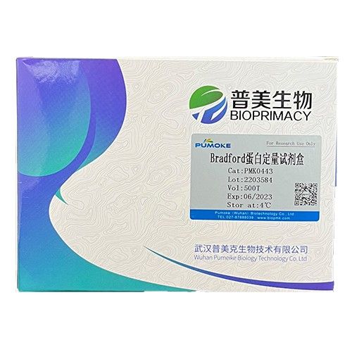 Bradford蛋白定量試劑盒主要由G250、緩沖液等組成,檢測速度很快,少量樣品一般只需10min即可完成檢測。檢測濃度下限達到25ug/ml,小檢測蛋白量達到0.5ug,待測樣品體積為1~20ul。在50~1000ug/ml濃度范圍內有較好的線性關系。