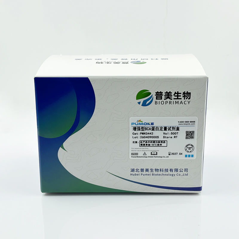 增強型BCA蛋白定量試劑盒的原理是蛋白質分子中肽鍵結構在堿性條件下將二價銅離子還原為一 價銅離子,一價銅離子與BCA分子形成紫色絡合物。