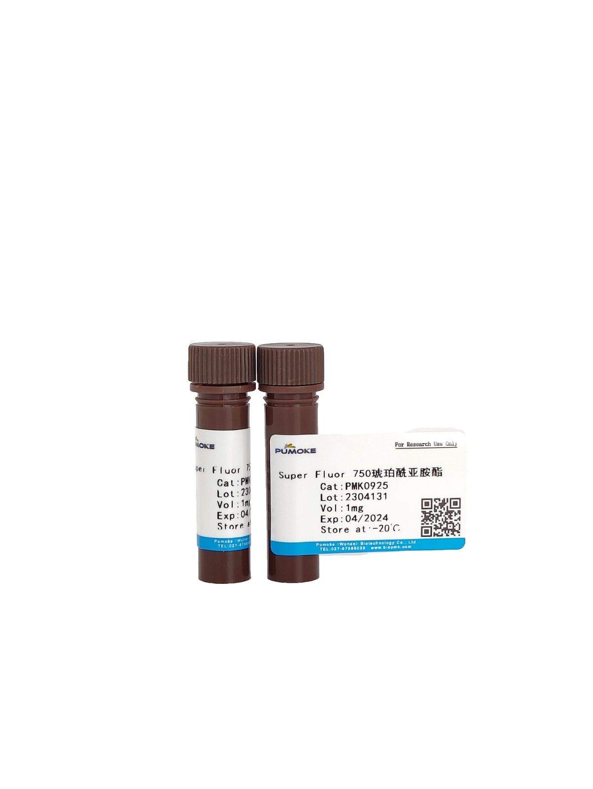 Super Fluor系列(可替代Alexa Fluor 系列)熒光探針,具有更強的熒光強度,更廣的pH應用范圍(pH 4~10), 更好的抗淬滅性。在生物熒光領域已逐漸替代FITC,Cy3, Cy5, Cy5.5, Cy7等熒光染料。 Super Fluor 750 NHS= Super Fluor 750 SE~Alexa Fluor 750 SE。